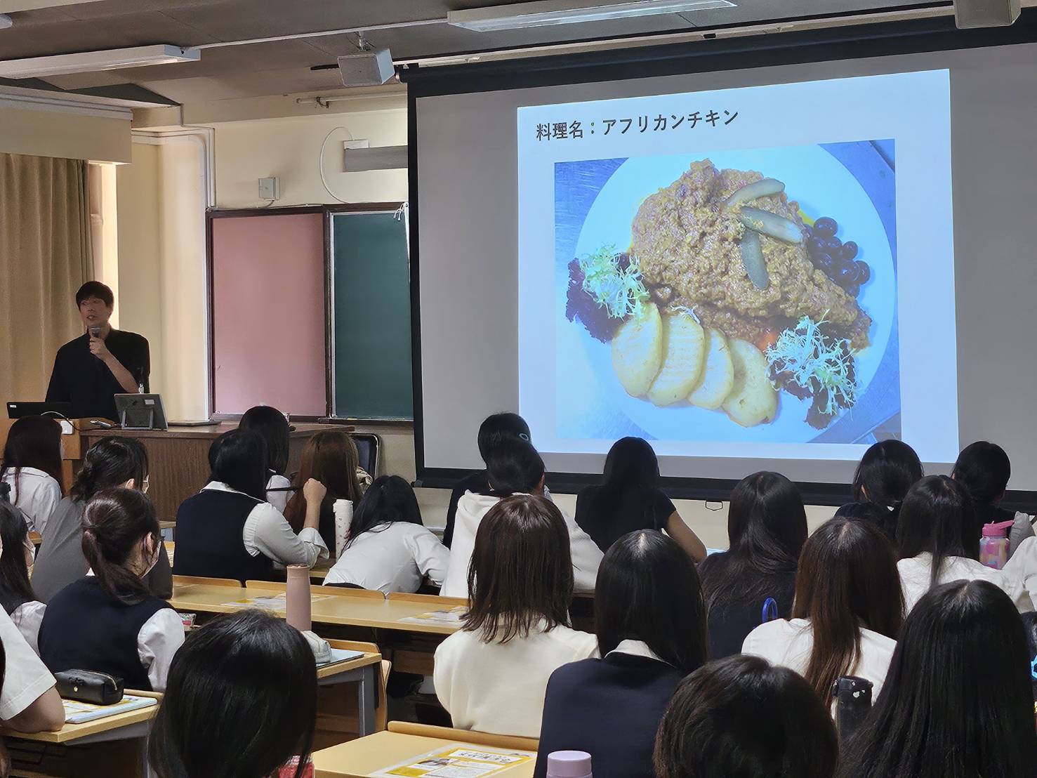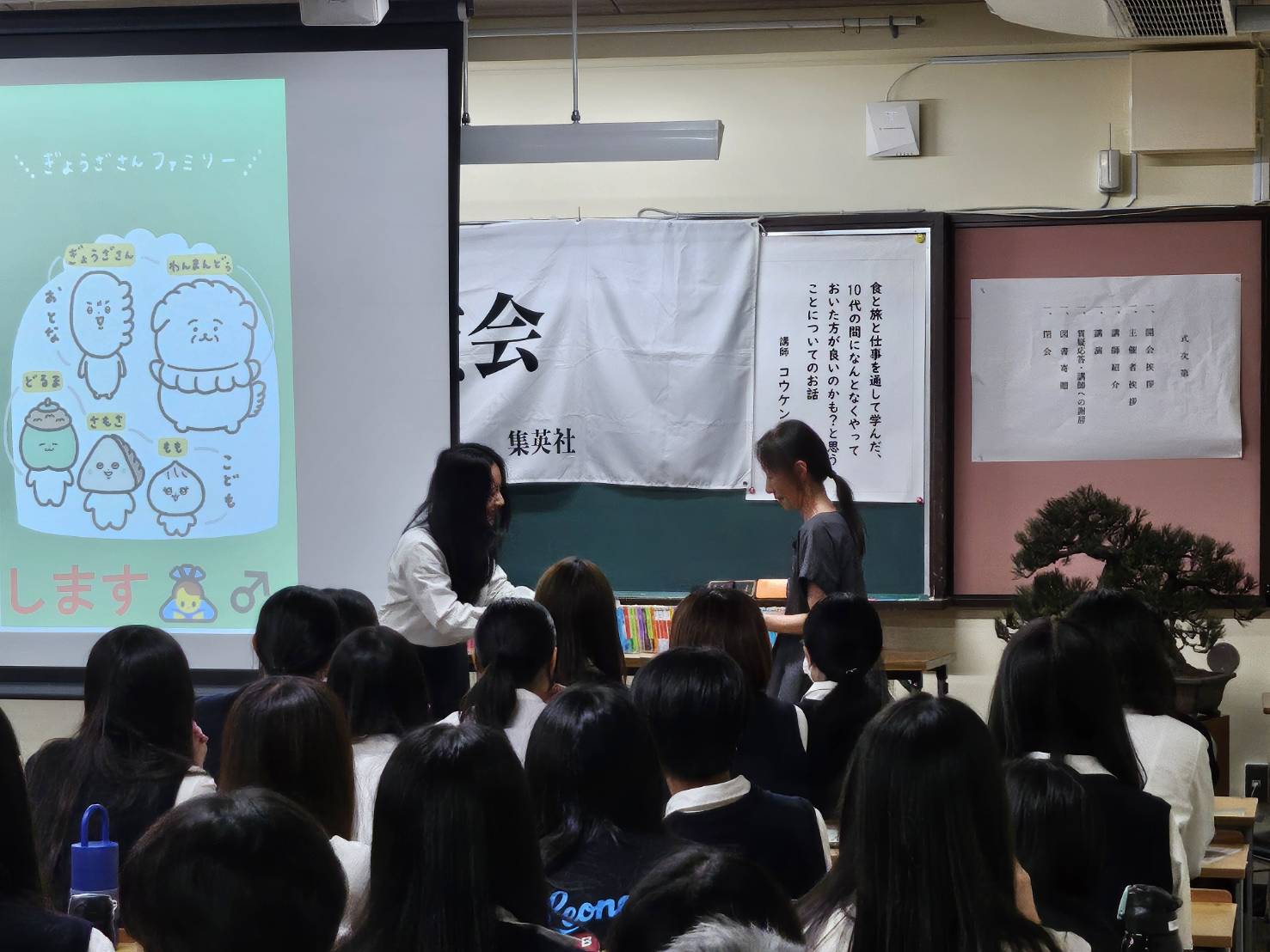 9月17日、「第60回高校生のための文化講演会」(京都新聞社・一ツ橋文芸教育振興会主催)が本校で開催され、料理研究家のコウケンテツさんを講師にお迎えしました。「食と旅と仕事を通して学んだ、10代の間になんとなくやっておいた方が良いかも?と思うことについてのお話」をテーマに、ご自身のさまざまな経験を交えながら、「好き」を見つけることの大切さ、失敗の価値、人とのつながりの重要性について語ってくださいました。穏やかな人柄にふれ、笑いとクイズに包まれた2時間はあっという間でした。また、集英社様より図書館に本と辞書100冊のご寄贈もいただき、心より感謝申し上げます。