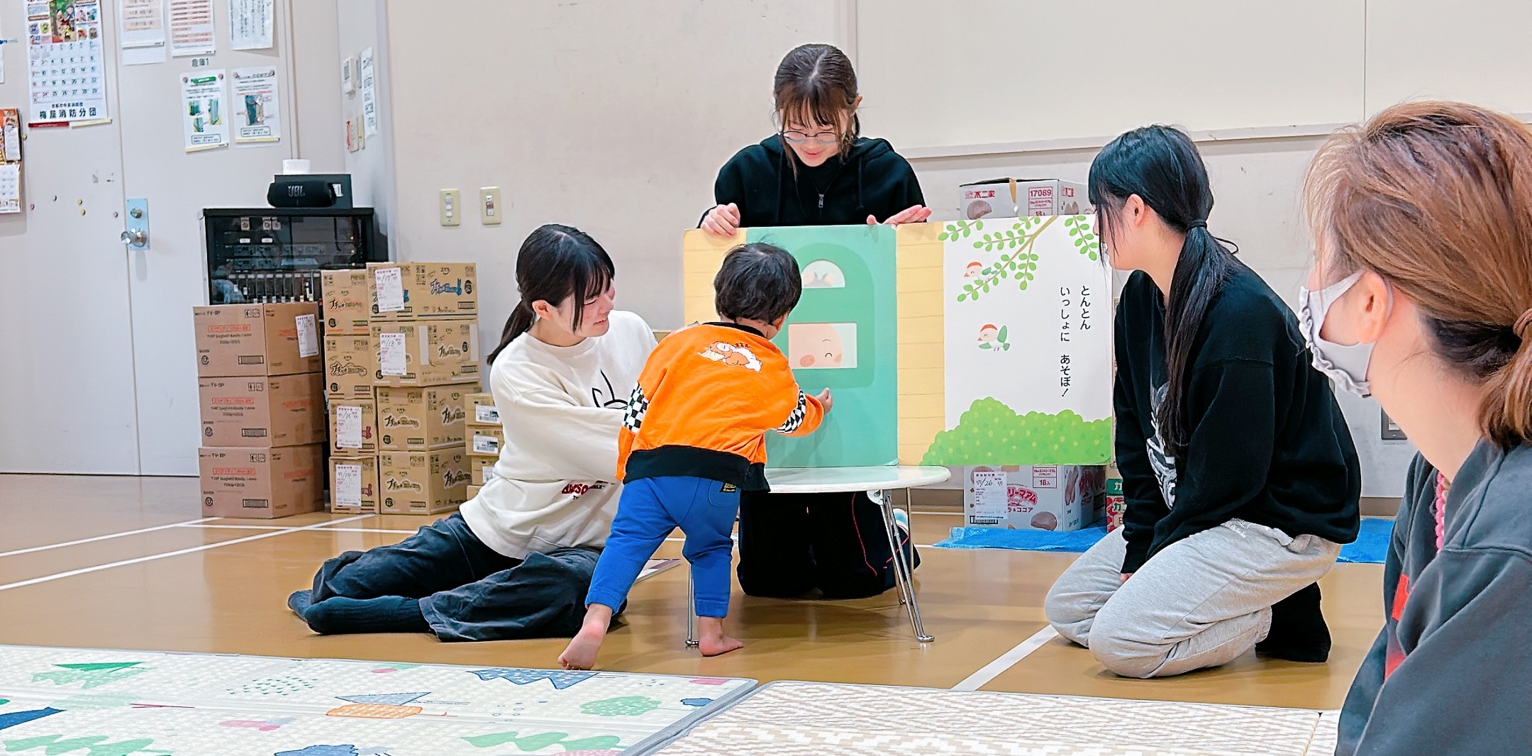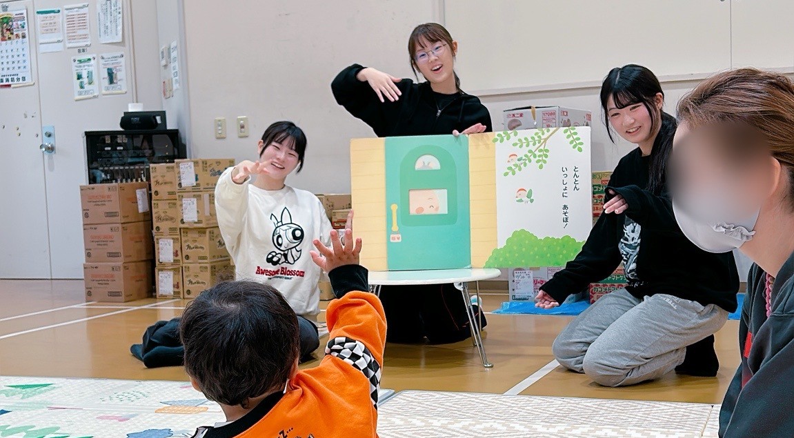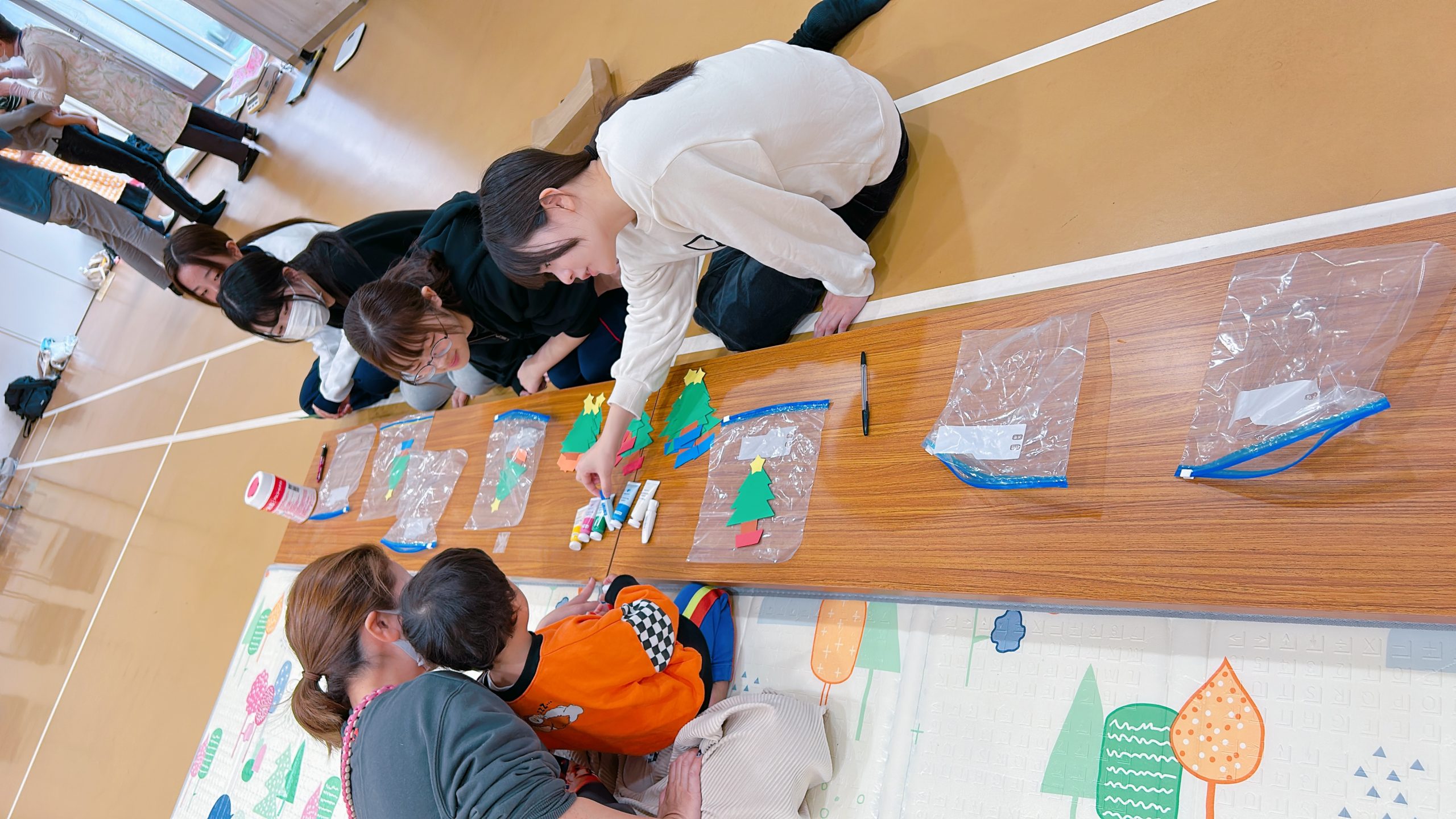 11/1(土)、幼児教育進学コースの生徒が梅屋学区の子育てサロン「きっずぱあく」に参加しました。