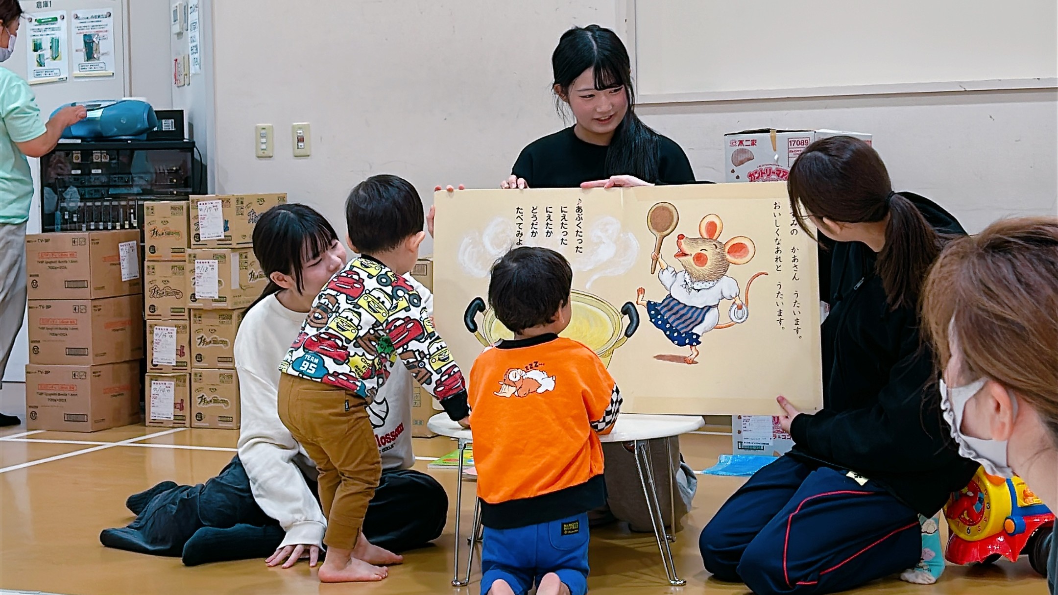 特に絵本や紙芝居には皆興味津々で、近くまで寄ってきて楽しんでくれました。