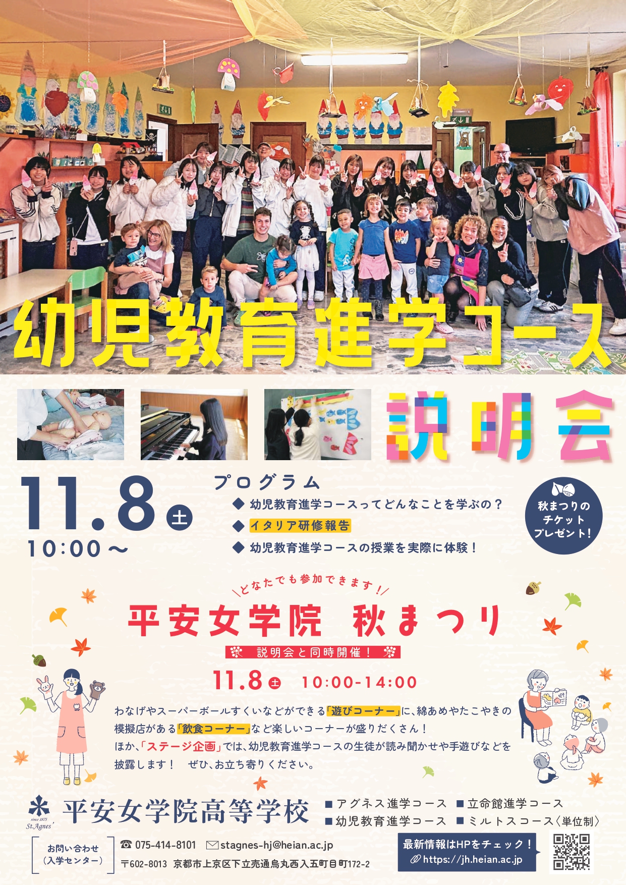 11/8(土)に幼児教育進学コース説明会を実施します。お申し込みは不要です。多くの方のご参加をお待ちしております。