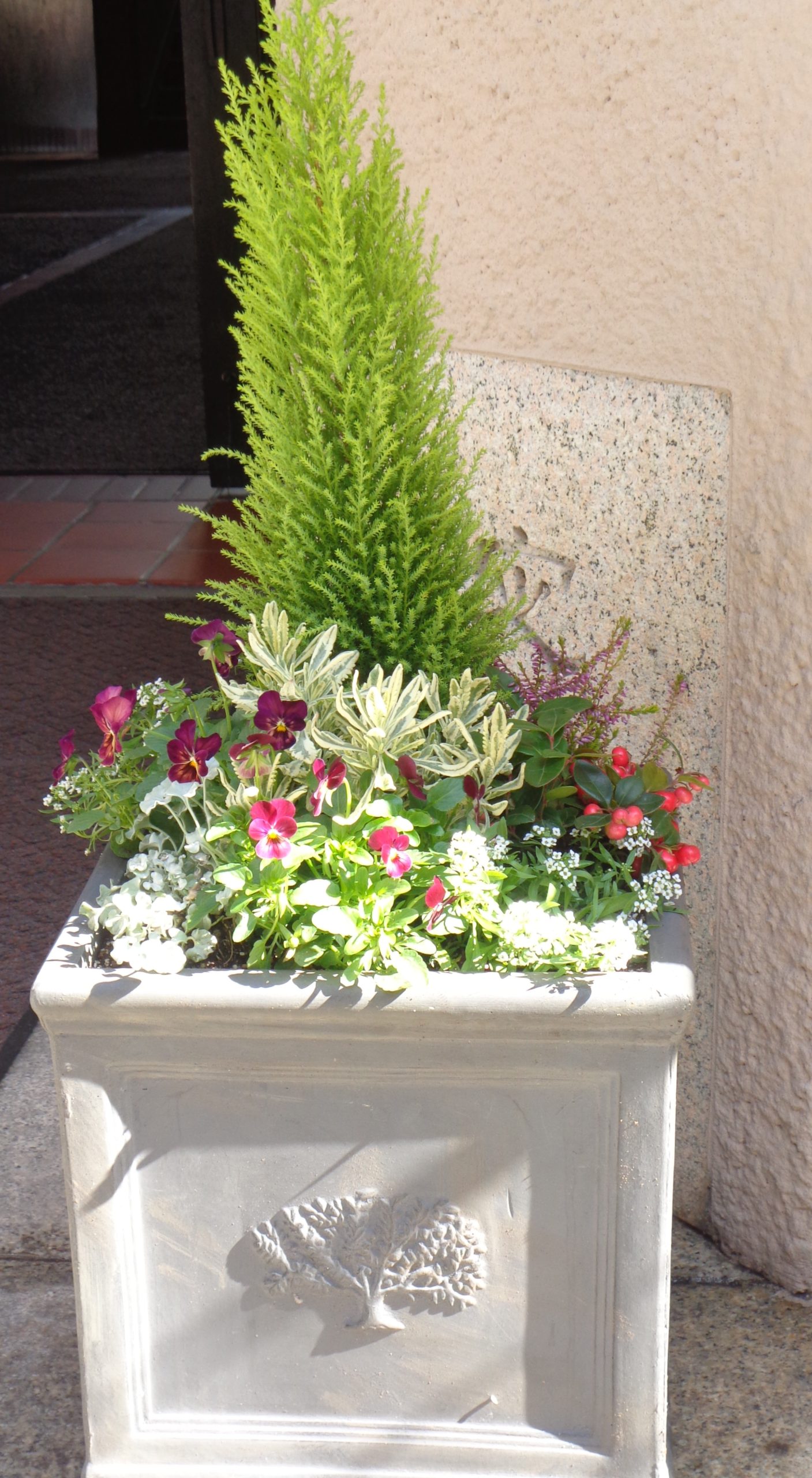11月1日、保護者会ボランティア委員会の皆さんで今年もクリスマスに向けての寄せ植えをしていただきました。室町門入口に置いていますのでぜひ見てください。年度末には、入学式に向けて花の苗を入れ替える予定です。