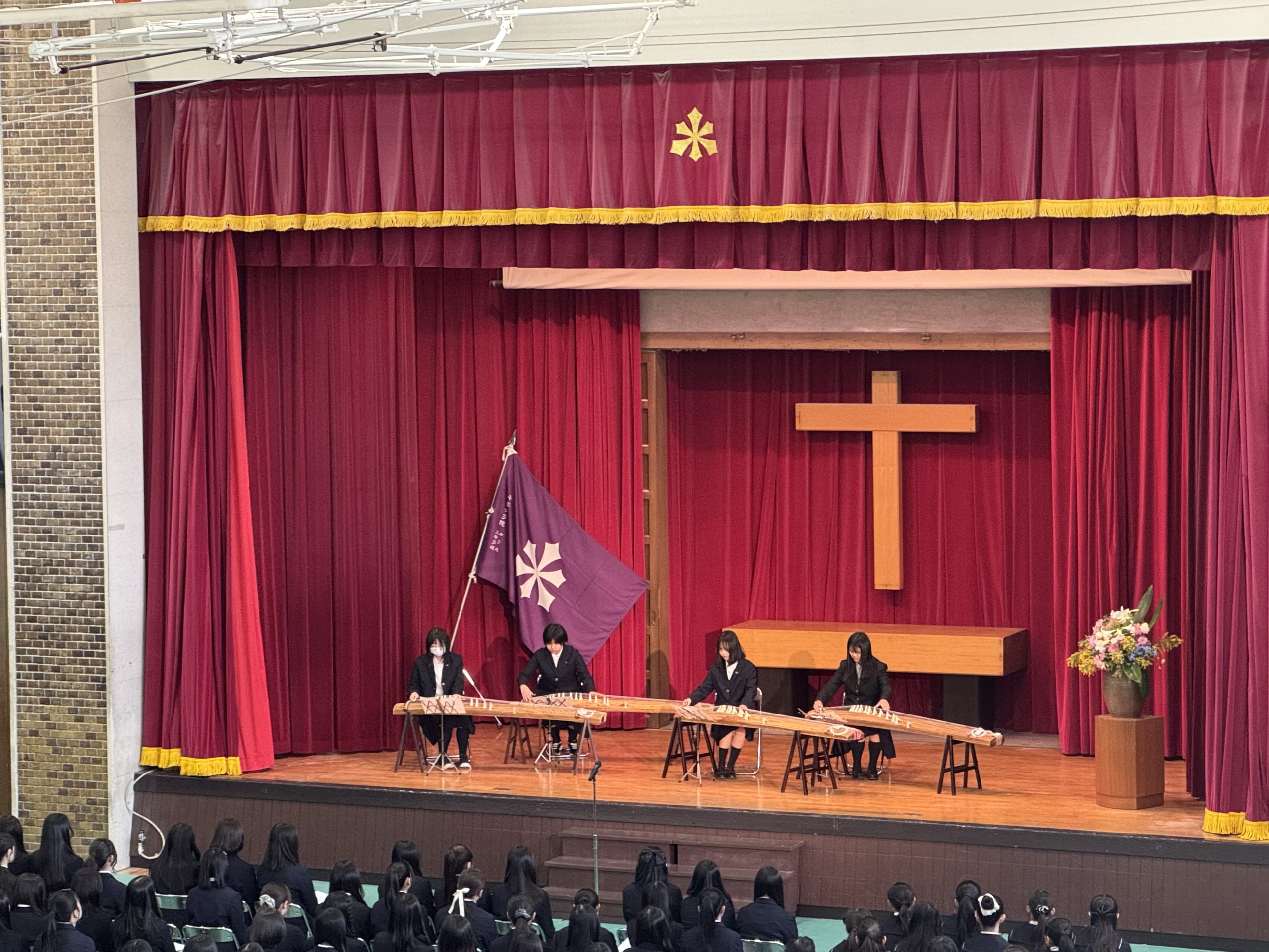 4月8日(水)中学校、高等学校合同の入学式を行いました。新しい学校生活に希望を膨らませた新入生の皆さんを迎え、今井校長から本校で大切にしていることのお話がありました。入学式のあとには、コーラス部、ハンドベル部、筝曲部、吹奏楽部の演奏で、新入生を暖かく迎えました。