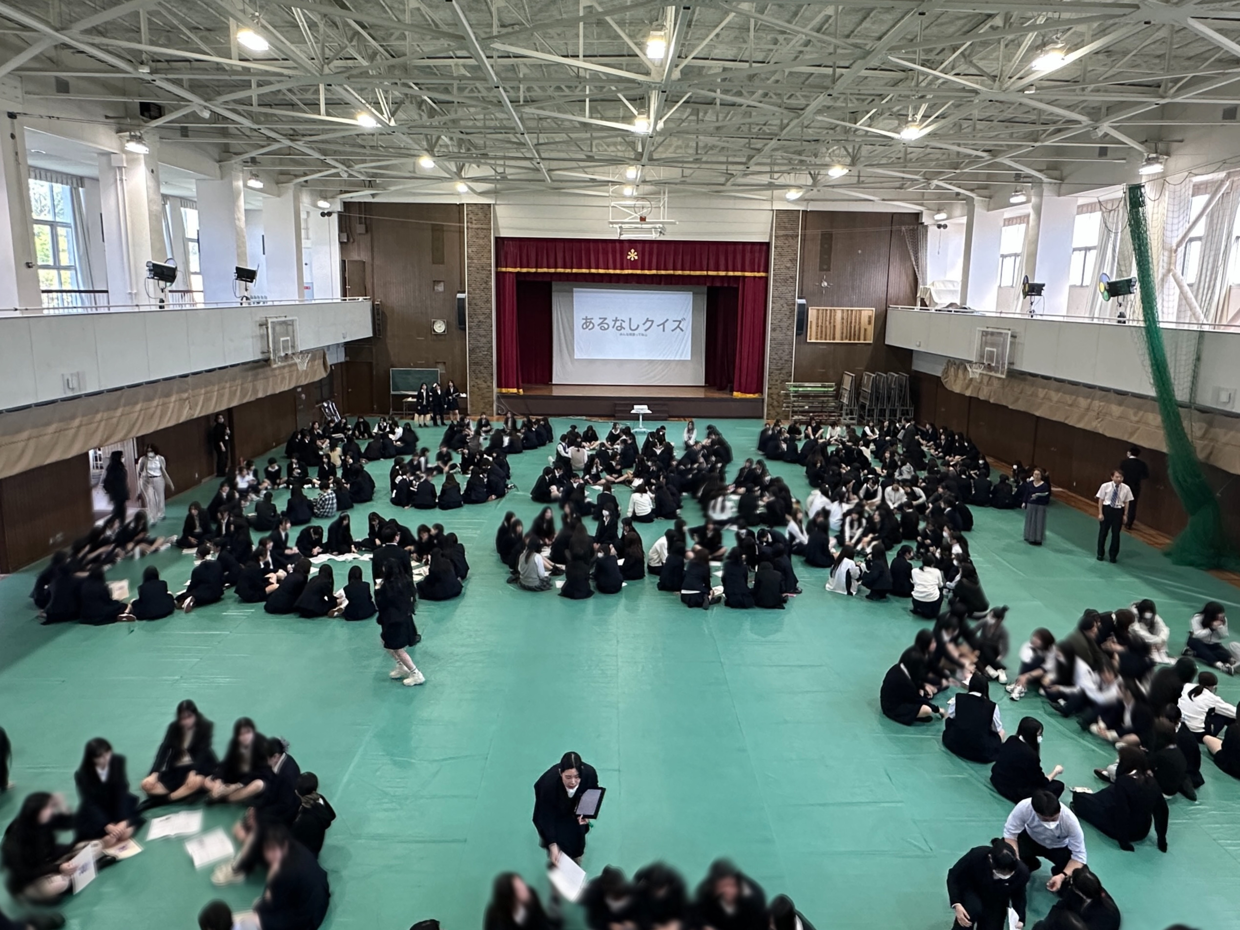 後半はレクリエーションを行いました。高校では クラス一体となり盛り上がる「あるなしクイズ」を、中学では クラス混合チーム対抗「ビンゴゲーム」を行いました。