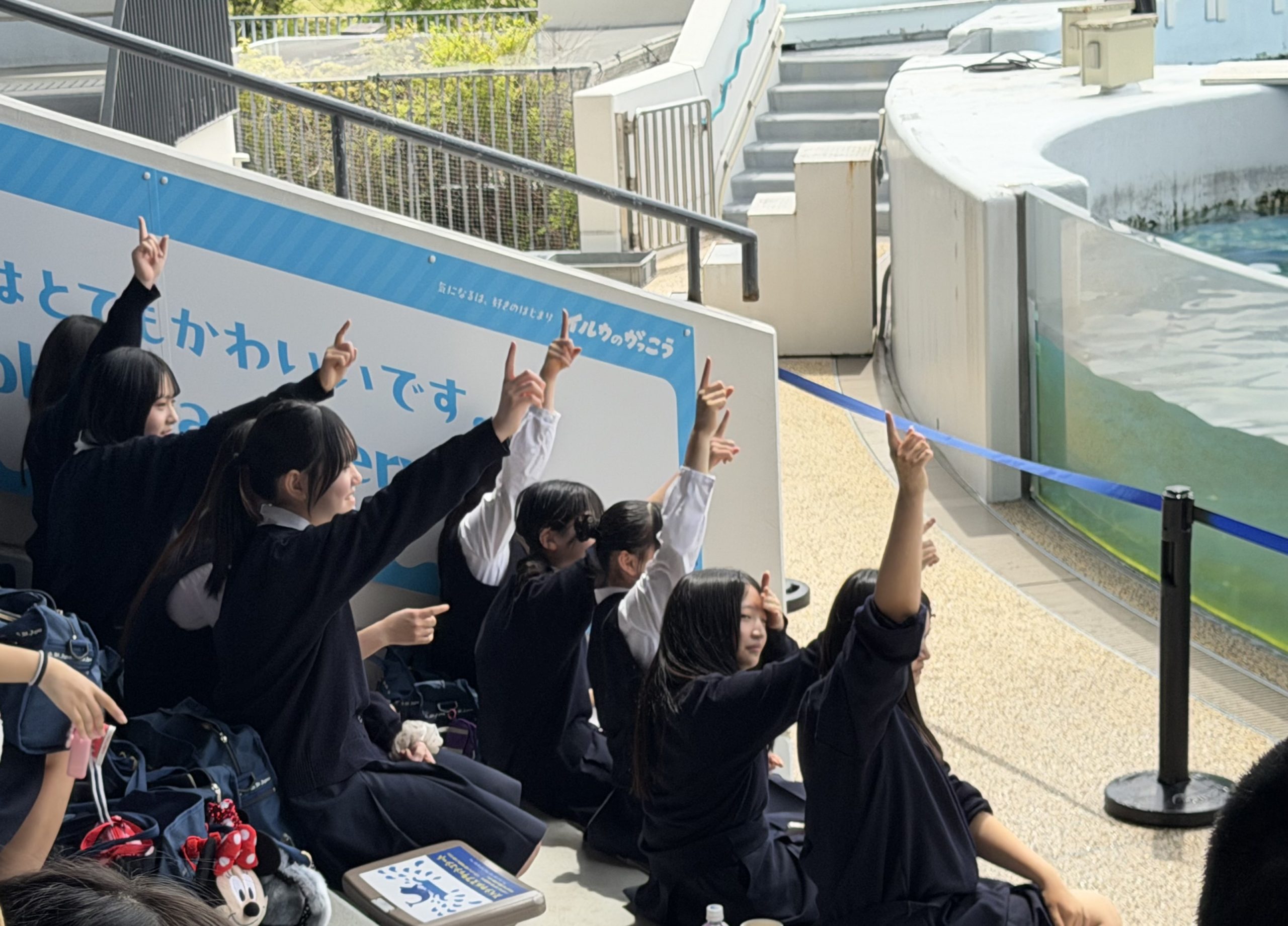 中学2年生は、学年企画として京都水族館と京都鉄道博物館に行きました。水族館では、珍しい魚やイルカショーを見学しながら楽しい時間を過ごしました。鉄道博物館では、電車の仕組みや歴史について学んだり、SLに乗車したりと、貴重な体験をすることができました。和気あいあいと色々なお友達と会話しながら、学年全体で交流を深められました。