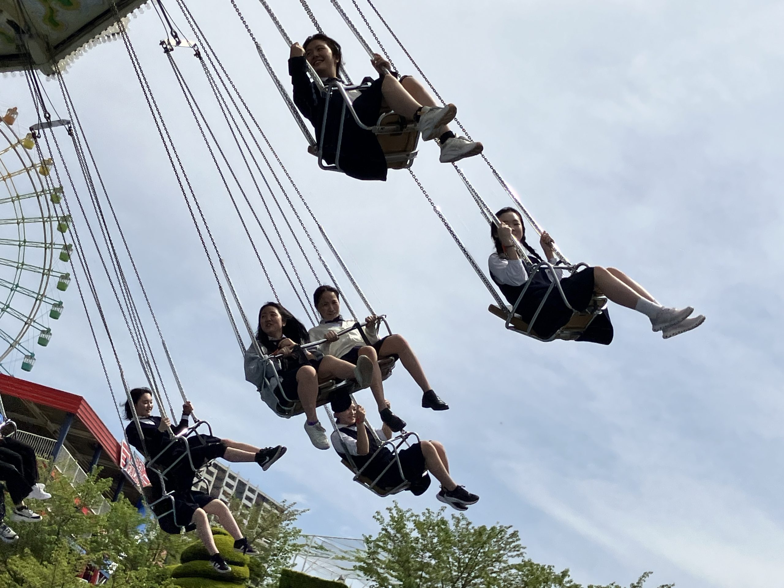 中学3年生の校外学習は、ひらかたパークに行ってきました。天気に恵まれ、自分たちが事前に計画した順番でアトラクションを回り、新しいクラスメイトと班活動ができました。友達に対する配慮や意外な一面を知る機会となりました。